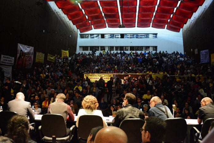 O auditório Dante Barone ficou lotado de militantes, apoiadores e simpatizantes da pré-candidatura de Luciana Genro. Ao todo, mais de mil pessoas passaram pelo local, que foi coberto de faixas e cartazes em referência a pautas importantes para a esquerda, como os direitos das mulheres, dos negros e dos LGBTs, além da luta por moradia digna e por democracia real.