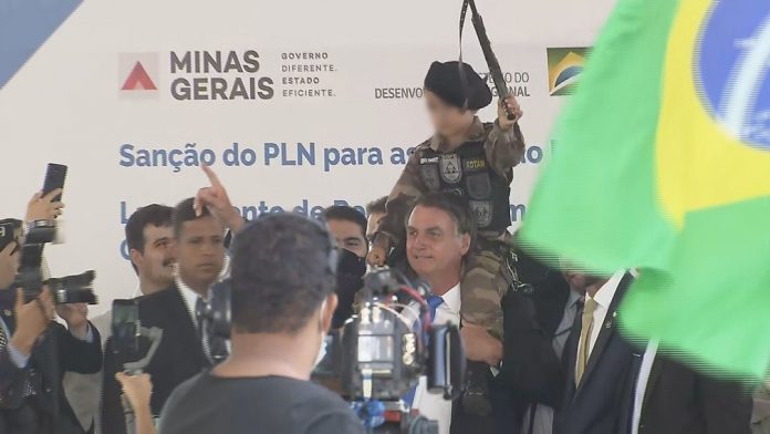Na última semana, Bolsonaro visitou Belo Horizonte e, em evento na capital mineira, mais uma vez descumpriu regras sanitárias e ficou sem máscara durante toda a cerimônia, assim como sua comitiva. Bolsonaro também posou para fotos segurando uma criança, também sem máscara, fardada e com uma arma de brinquedo nas mãos.