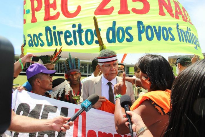 Nesta quarta-feira (16/12), centenas de indígenas subiram as rampas do Congresso Nacional e ocuparam a cúpula em protesto contra a Proposta de Emenda Constitucional 215 que altera as regras sobre a demarcação de terras. O líder da bancada do PSOL, Chico Alencar (RJ), foi ao encontro dos manifestantes para prestar o seu apoio à luta indígena contra a PEC 215. Chico falou sobre a pauta conservadora que o presidente da Câmara, Eduardo Cunha (PMDB-RJ), tem imposto ao país e elogiou a luta dos povos indígenas.